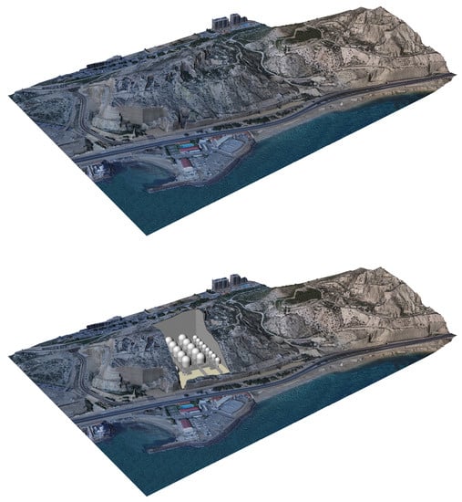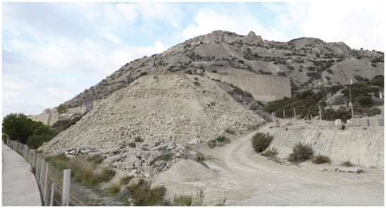 The Spanish Mediterranean coast, where the city of Alicante is located, is mainly clay []. In the urban center of the city are the two mountains compared in the study: Monte Benacantil and Serra Grossa. Therefore, they can be considered to have the same igneous composition.