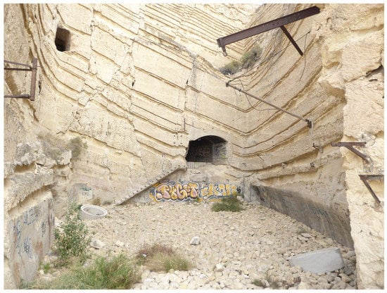 The municipal Special Archaeological Protection Plan of Alicante has collected the proposals but did not grant any type of protection. A report by the Directorate General of Heritage of the Department of Culture of the Valencian Community recommended that the facilities be declared a “Property of Local Relevance”. Figure 8 shows one of the entrances to the complex from the Sangueta stop that was finally built.