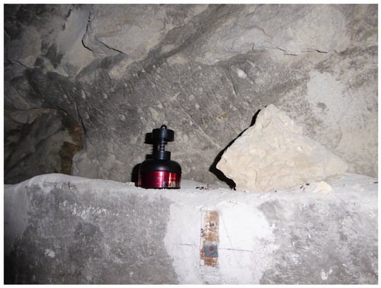 The radon gas measuring system used in the study was a short chamber and short electret of the Eperm System for two days (Figure 10). The complex morphology of the site means that all the rooms studied have similar conditions of low ventilation.