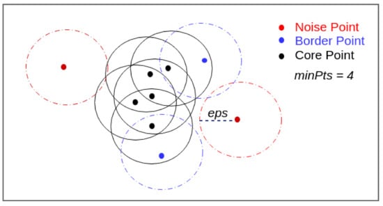 - Schubert, E.; Sander, J.; Ester, M.; Kriegel, H.P.; Xu, X. DBSCAN revisited, revisited: Why and how you should (still) use DBSCAN. ACM Trans. Database Syst. (TODS) 2017, 42, 19. [Google Scholar] [CrossRef]