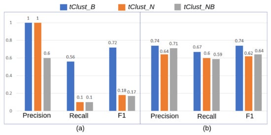 Generally, a minimum  can be obtained from the number of  in the data set, as . The extremely low values of  do not provide a significant gain of using DBSCAN clustering and hence  must be set to be at least 3. Larger values are considered more robust to noise and yield more significant clusters. In general,  is suggested while larger values are encouraged for larger data sets containing noise and duplicates []. A single absolute value for  may not be appropriate (e.g., comparing different places with varying numbers of tweets) therefore a percentage of the tweets is taken as a general approach []. The distance parameter  for DBSCAN is comparatively more difficult to set. DBSCAN algorithm inherently encourages the smallest possible value for . It is important to consider the application domain knowledge and the target geography while setting this parameter. Also, researchers advocated that if  is based on domain knowledge then  may vary, to get different insights into the data. Many studies in the literature follow a trial-and-error approach with various values and compare the clustering results with the background knowledge of the study area in order to select some absolute values as the parameters (e.g.,  = 100 and  = 10 ) [,,]. Others such as Briant et al. use some heuristics (i.e.,  to determine such clustering parameters []. Such tricks may not be suitable because this study requires the formation of maximum numbers of clusters as possible. Apart from being sparse data region, the number of tweets and geographic characteristics of the selected study areas differ significantly. Hence, it is necessary to test the different possible combinations of parameters to estimate reasonable values. To address this problem of parameter estimation, we proposed two objective functions: