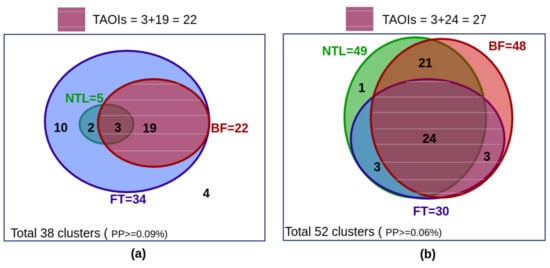 - Lastly, BF and NTL thresholds must be fulfilled. Based on the contribution of BF and NTL, three different methods are defined to identify TAOIs as follows: