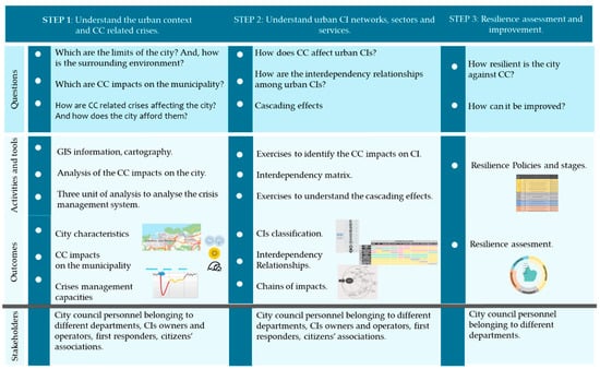 By using the guide, the cities will obtain the following outcomes: (1) a set of policies for enhancing city resilience; (2) greater knowledge about urban CI sectors, their interdependency relationships and the chain of impacts resulting from cascading effects in the short and long term; and (3) a qualitative assessment of the city’s resilience level in the CC context.