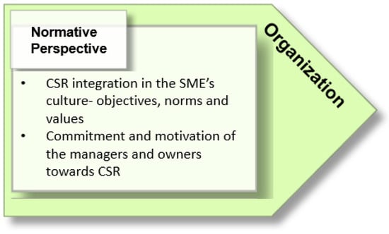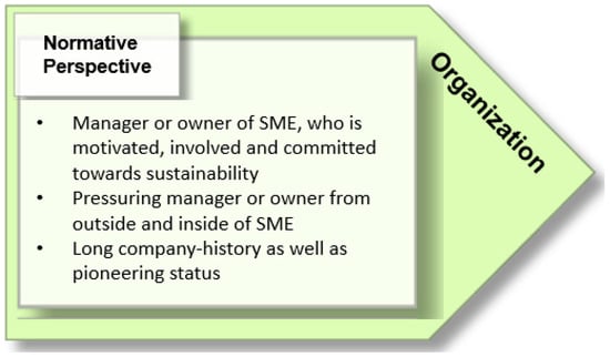 With respect to challenges from literature which SMEs face on the normative management level, both theory and practice claim that a key reason why some SMEs are so successful in their CSR practices is the high commitment and involvement of their top management and/or owner towards sustainability [] (pp. 27, 492).