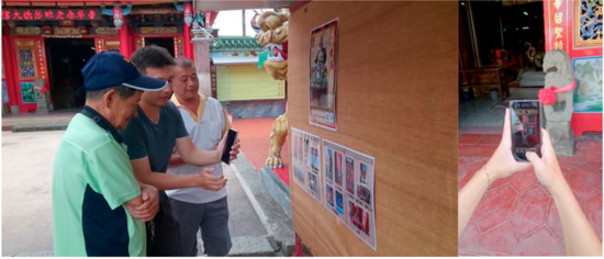 In addition to the architectures, the core value of martial temple is cultural customs and religious activities. According to field studies, the sacred objects and materials that have been incorporated into AR application including: (1) martial temple God-Guansheng Di Jun statue, (2) dragon door gods, stone lions, wall carvings, traditional objects pillow stones, column bases, and whole building structures, (3) incense burners, worship rules and order, (4) inscriptions and its history, (5) stone pillars and the poems on them, (6) religious activities—Yanshui firework festival. The users can instantly get information by censoring the objects through application, by which cultural learning performance should be enhanced.