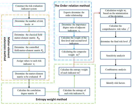 - On the basis of the traditional matter–element extension model, the method of indicator weighting is improved. We draw upon the minimum deviation method, which integrates the entropy weight method and the order relation method, and more reasonably reveal the importance of each risk indicator.