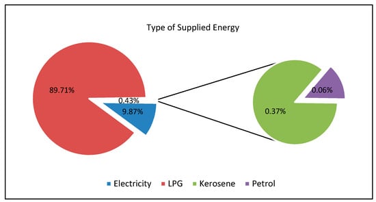 As shown in Figure 5, households spent approximately 89.71% on LPG, 9.87% on electricity, 0.43% on kerosene/petrol per month. The high percentage of LPG expenses for power generators in residential units of Mahabad city can be attributed to the supply facilities that recently associated with the grid in Iran. In addition, insufficient power generated by power plants considerably reduced the power supply in Iran over recent decades, such that the amount of electricity supplied to over 80 million people (i.e., 2722 kWh per capita) was less than 79,033 MW at the time of the study []. The ascending trend of demand and the descending trend of supply caused many problems including frequent outages, load shedding, and even power outages for a couple of days in some areas. Under these conditions and as demonstrated in Figure 5, households may think that they pay for services they never receive. In spite of such an unfavorable supply, electricity stands in the second position of household costs. However, a few months before the survey began, the electricity tariffs increased in Iran.