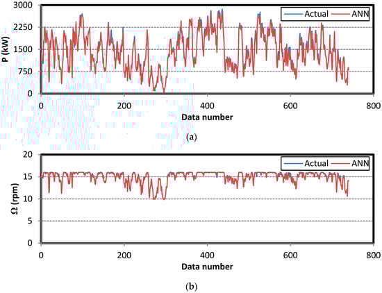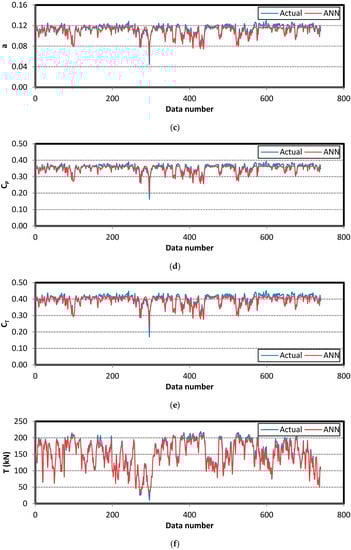 It is executed 25 independent runs for each dataset. The neural network is constituted with the best parameters. These parameters are obtained by the end of 25 run and neural network are used in the test phase. For the testing data sets such as , Ω, , , , T and λ data, the figures in Figure 5 of the ANN performance and the real values are presented to show the effectivity of the proposed model.