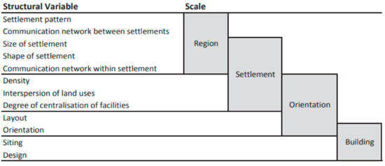Urban structure variables affecting energy at diverse urban scales.