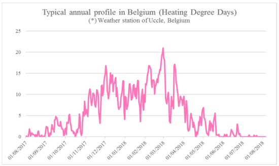 For this study, we used the website of the degree days methodology, providing as input the meteorological data of the Uccle Station. The findings of the calculations are provided in Section 4 and Appendix A of this paper.
