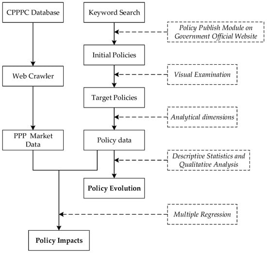 The study was conducted in three steps. Firstly, policy documents and PPP market data were collected. Secondly, the evolution of policies in each analytical dimension was investigated. Finally, the impacts of PPP policies on the PPP market were evaluated through four dimensions based on multiple regression technology. Figure 1 shows the detailed research steps.