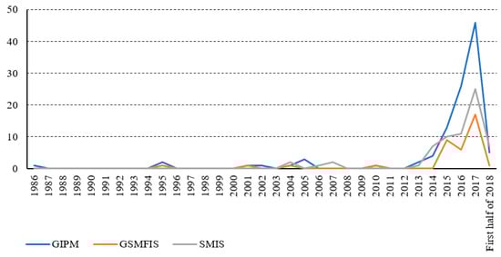Annual numbers of GIPM, SMIS and GSMFIS between 1986 and 2018.