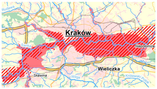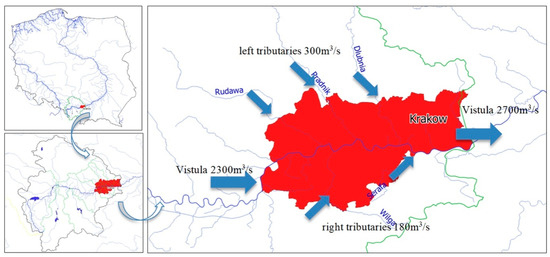 In 2000, the Council of the City of Krakow approved the local plan for limiting the effects of flooding and flood prevention for Krakow. The primary objective of this plan was to define the technical and non-technical measures (to be taken prior to, during, and after a flood) that are for necessary increasing the city’s flood safety, based on identifying Krakow’s flood hazard [58].