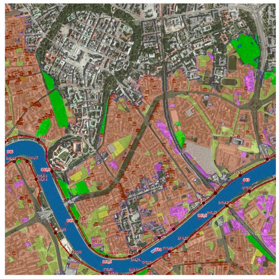 The Flood Effects Minimisation and Drainage Plan for the City of Krakow is a local municipal sectorial plan, but it functions in connection with the city’s strategic planning documents, including the “This is where I want to live. Kraków 2030” City Development Strategy [78,80]. The plan defines the following goals: the strategic goal—creating a city that is friendly to live in, as well as operational goals—a sustainable environment and a high safety level in Krakow. As key measures meant to implement these goals, the plan assumes the modernisation and extension of municipal infrastructure and the improvement of crisis management [78]. This plan also does not feature direct references to building heritage areas and sites.