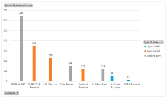 Figure 1, their distribution in the retail network can be observed. The graphic was built by processing the data available on the official site of the Ministry of Agriculture and Development of Romania [