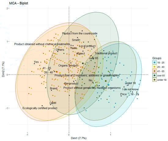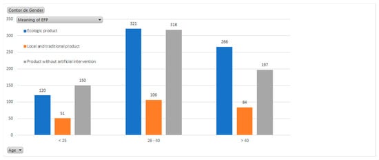 Figure 10). For the time being, we considered it interesting to merge a few of the age categories and meanings of ecological, which were produced at the level of the respondents’ mental projections. Thus, we obtained a simple correlation among three age categories and three unified concepts for the meaning of an ecological product.