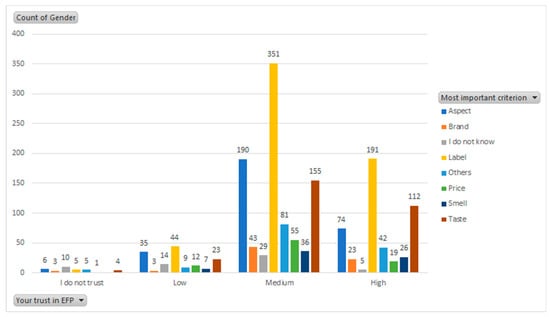 Figure 13, the label was the most important criterion of purchase for those who had a medium and high degree of trust in ecological agroalimentary products.