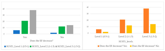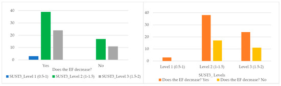 Cross-tabulation between the different levels of SUST 3 and whether the EF decreases or not.