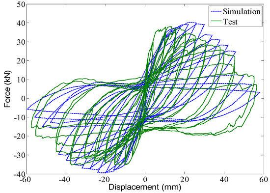 Prediction results on a cyclic loading test of RC column by Lu [43] (side column specimen).