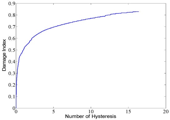 Using damage indices with a range from 0 to 1 is a straightforward way to describe the damage degree of an element. For the beam-column element, the damage indices for axial force and bending moment at section level are firstly calculated by using the damage index formulas proposed by Talaat [40] (Equations (3.42)–(3.43) in the reference). Then, the elemental damage index is represented as the maximum value of the section damage indices among all integration points. In the study, the Gauss-Lobatto integration scheme is used to solve the integrals relevant to the element formulas and five integration points are used for each element.