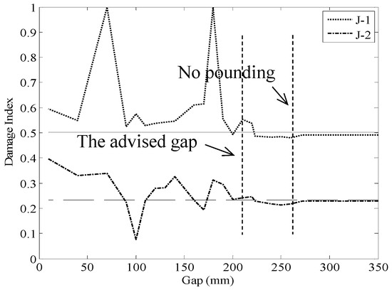Structural damage index varied with the separation gap under ground motion (El Centro, Array #5, 140).