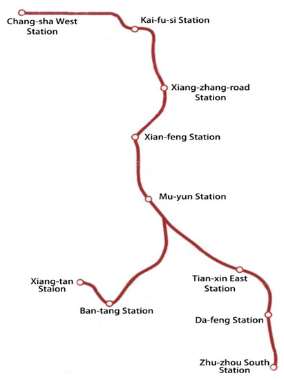 - Shao, M. Study on Passenger Flow Forecast and Transportation Organization of the Chang Chu Tan Intercity Railway. Ph.D. Thesis, Southwest Jiaotong University, Chengdu, China, 2015. [Google Scholar]