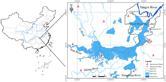 This study was conducted at the East Dongting Lake National Nature Reserve (Figure 1), which lies on the southern bank of the middle Yangtze River, China [40]. The region possesses a subtropical monsoon climate. The annual mean temperature ranges from 16.4 to 17.0 °C, and annual precipitations range from 1200 to 1330 mm. The wetland is about 1900 km2, and includes freshwater lakes, marshes, and seasonally submerged moss meadows. As a seasonally inundated water body, the water level fluctuates seasonally and annually, thereby creating and maintaining a dynamic landscape of marshlands in winter and flood plains in summer [41,42]. There are abundant vegetation resources, with more than 1000 species.