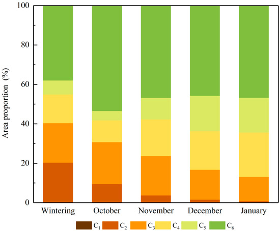 Finally, the MVC method was used to synthesize the monthly data in order to obtain the best state of the wetland vegetation on a monthly time scale. The NDVI value of each wintering season was calculated from the average value of the four months during October, November, December, and January.