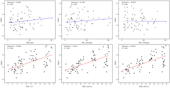 After analyzing the dynamics in the temperature and precipitation during the past decades, this study analyzed the correlations between the monthly mean vegetation NDVI and the associated meteorological factors. The effects of climate controls were also examined at a 16-d lag and a 32-d lag. Temperature generally exhibited a strong and positive relationship with the variability in NDVI. Especially, the correlation coefficient between the monthly average NDVI and a lag of 32 d in temperature reached a peak of 0.6414 (Figure 7). Generally, the precipitation showed no significant correlations with the monthly mean NDVI. All analyses showed that compared with precipitation, the variability in NDVI was more significantly correlated with temperature, which is the dominant factor controlling the vegetation growth in the East Dongting Lake wetland during the wintering periods.