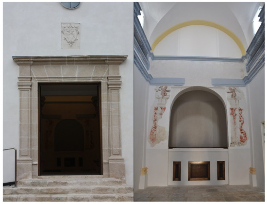 The Chapel of the Holy Sepulcher is a building built during the 18th century whose deterioration and lack of prolonged maintenance caused a process of structural collapse. At that time, it was acquired by the Orihuela City Council, which began a process of reconstruction and rehabilitation that was based on the recovery of two annex buildings that collaborated structurally in the stability of the nave of the Chapel and the collapsed parts of the vault, shown in Figure 1. The Chapel had the maximum level of protection at the city’s catalogue. This level implies the global protection of façades, roofs, and interiors, and that authorization is needed prior to any modification. The objective of the rehabilitation was to turn it into a community center for the neighborhood where it was located, which also identified with this building.