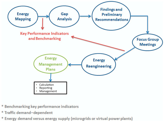 - The port of Thessaloniki focuses on (a) the development of a new information system for recording, assessing and monitoring, on a real-time basis, the consumption of electricity, natural gas, water and fuel covering all port activities and operations, and (b) the development of a PeMP following the methodology that was briefly presented in Section 2.3;