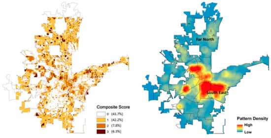 Prediction Composite Score and Pattern Density Map by District in Fort Worth, TX.