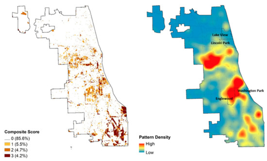Prediction Composite Score and Pattern Density Map by District in Chicago, IL.