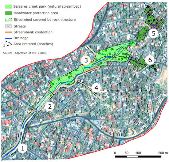 - Silva-Sánchez, S.; Manetti, C. Experiência de reconversão urbana e ambiental da bacia do córrego Água Podre. Parque Linear Água Podre. In Seminário nacional sobre o tratamento de áreas de preservação permanente em meio urbano e restrições ambientais ao parcelamento do solo–appurbana; Available online: https://www.mprs.mp.br/media/areas/urbanistico/arquivos/livroresumos.pdf (accessed on 12 February 2019).