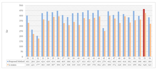 From the perspective of the total fleet cost, when the number of service units is in the range of 50-54, the number of rejected requests is not high; in fact, only one request is rejected (). When the number of service units is 50-53, the number of vehicles used remains almost constant, being either 19 or 20 (). When the number of clusters is 54, however, the number of vehicles used increases to 23 (), which is much greater than the numbers of vehicles used in the other cases. A similar trend is seen in terms of the variable cost (), and when the number of service units is 53, the cost is optimal. The reason for this finding may be that the routes corresponding to the specific distribution of the service units in the real-world road network are relatively simple when the number of service units is 53.