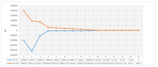 First, building on the results of steps (i) and (iii), we compared the plans designed for the LIPDRS and door-to-door (DtD) options. Regarding the passenger cost, LIPDRS results in a cost of approximately 160,723.46 () CNY, and DtD results in a cost of approximately 269,556.67 () CNY. Obviously, from the passenger’s point of view, LIPDRS costs 40.37% less than DtD. The difference in the general cost due to travel time is the main reason. To meet the LIPP in the real-world road network, the DtD service will require passengers to spend more time on vehicles after boarding, and the corresponding cumulative waiting time will constitute a significant difference in the passengers’ travel expenses. Regarding the fleet cost, LIPDRS costs approximately 4369.43 units, and DtD costs approximately 6804.38 units. Thus, LIPDRS costs approximately 35.79% less than DtD. This difference is due to the establishment of the service units, which greatly reduces the transportation burden placed on the vehicles and thus reduces operating costs. Therefore, in this real-world case, the proposed transport option has an economic advantage.