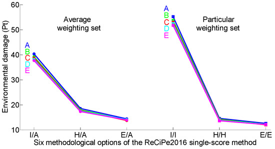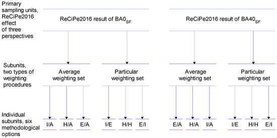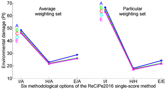 - Verbitsky, O.; Pushkar, S. Eco-Indicator 99, ReCiPe, and ANOVA for evaluating building technologies under LCA uncertainties. Environ. Eng. Manag. J. 2018, 17, 2549–2559. [Google Scholar] [CrossRef]
