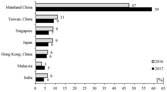In general, the cruise market is divided into three main regions including North America, Europe, and Asia [10,11]. The cruise sector contributes to a significant component of the global tourism industry, especially in the region of Asia [4,12]. In recent years, Asia has recorded a higher growth rate than other regions. Many frequent cruisers are looking for attractive destinations, diverse cultures, and wonderful experiences which they would find in Asian regions, for example, mainland China, Hong Kong (China), Singapore, Taiwan (China), Japan, and Vietnam. In order to meet an increasing demand from cruise passengers in the forthcoming years, cruise lines are continuously increasing their capacity in terms of the number and size of cruise ships. Recently, the region of Asia has demonstrated a dramatic growth in the cruise tourism business. In 2017, 10.4% of global cruise ships were deployed in the region of Asia. Indeed, China accounts for around 6% of the global capacity. In 2017, the number of Asian cruisers exceeded 4 million. About 2.39 million (59%) cruisers sailed from China cruise ports (see Figure 1). Start from 2016, China has already surpassed Germany to become the second largest cruise passenger market in the world. We have provided the details in Figure 2.