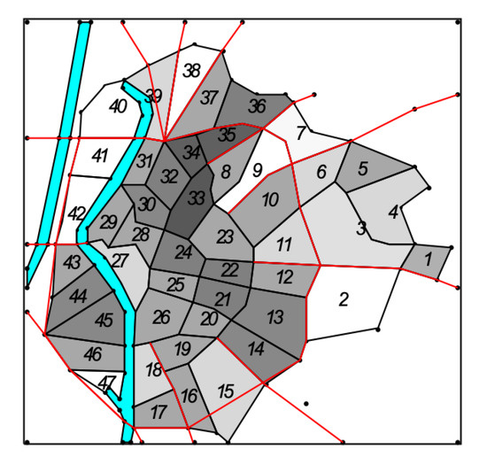 Concerning the railway network, De Los Santos et al. [20] developed a heuristic algorithm in order to define, for each line, the number of services per hour and the number of carriages of a defined metro, improving the satisfaction for users. Tu et al. [21] demonstrated the advantages of using a metaheuristic method based on a bi-level Voronoi diagram to approach the VRP. The benefits of using a mathematical approach based on a Voronoi diagram are also underlined in a real application for the city of Seville [22].