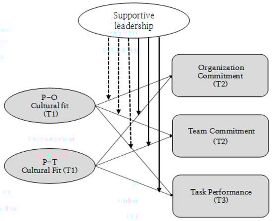 Supportive leadership will control the effects of P-T cultural fit on (1) organizational commitment, (2) team commitment, and (3) task performance. That is, supportive leadership will further strengthen the positive effect of P-T cultural fit on an organization’s members.