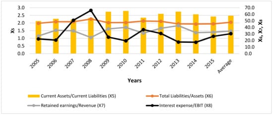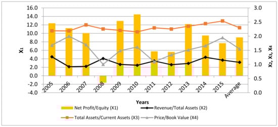 Basing on ratios (x5, x6, x7, x8) we noticed that food companies from Northern Europe demonstrated a high orientation on continuity (we use the term ‘solvency’ in further text) in 2005–2015 (Figure 3).