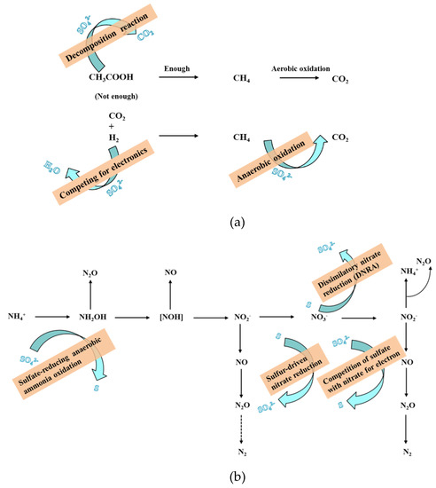 - Zhu, J.; He, Y.; Zhu, Y.; Huang, M.; Zhang, Y. Biogeochemical Sulfur Cycling Coupling with Dissimilatory Nitrate Reduction Processes in Freshwater Sediments. Environ. Rev. 2018, 26, 121–132. [Google Scholar] [CrossRef]