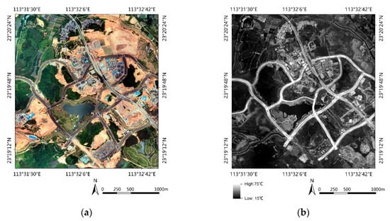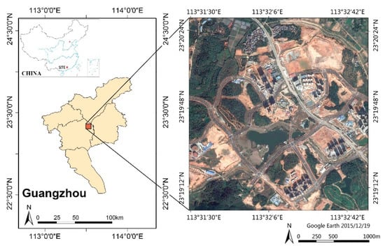 Our observation area, located in the southern start-up area, lies between approximately 23°19′00′′ to 23°20′30′′ latitude and 113°31′28′′ to 113°32′51′′ longitude, covering an area of 6.72 km2, as shown in Figure 1. Given its rapid conversion from a rural area into an urban one in a short time, our observation area is extremely suited for observing and analyzing the patterns of changes in LC, LST and SUHI.