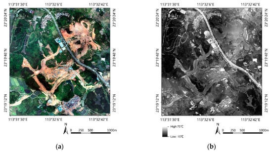 Maps after mosaicking and spatial co-registration in 2015: (a) Visible; (b) TIR.