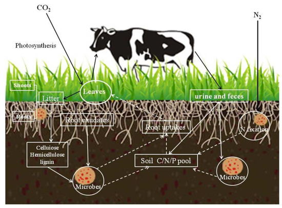 Conceptual model of the interactions in a grazed plant–soil–microbial system.