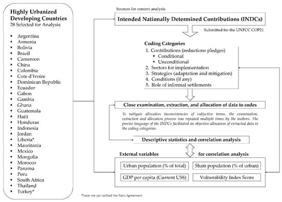 In this study, we analyze the NDCs of developing countries, which are mostly urban. Investigating highly urbanized developing countries and their climate change policies is significant because as the world continues to urbanize, sustainable development challenges will be increasingly concentrated in cities, particularly in the lower–middle-income countries, where the pace of urbanization is fastest [62]. Consequently, grouping countries with similar socio-economic realities has been promoted as a good research mechanism to understand climate policies derived from NDCs [30].