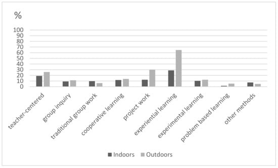 A second important result was that outdoor methods were shown to be more efficient than indoor methods (especially in identification of plant species), which supports previous research about the importance of outdoor teaching [,]. Notable is also that the urban student teachers in this study preferred indoor methods significantly more often than outdoor methods, whereas the rural student teachers preferred outdoor methods. This is in contrast with previous research results, where urban students experienced outdoor learning as something “exotic” and the rural ones as everyday life [,]. The majority’s opinion about outdoor experiential learning as the most efficient method did not alone correspond to better results in the identification test, whereas the second most emphasized method, outdoor project work, did. Outdoor experiential learning was, however, often emphasized together with outdoor project work. Student teachers who emphasized both outdoor experiential learning and outdoor project work as their most efficient methods, also received significantly better results in the species identification test than the others. The efficiency of outdoor project work was explained through active participation and contact with nature, but also by teacher guidance. The fact that several student teachers pointed out the importance of teachers’ skills for guidance outdoors is interesting regarding their own professional development.