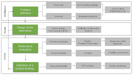 Following the classical approach proposed by Simon (1972) to the decision-making process, an integrated methodological framework was developed for this case study, as Figure 1 illustrates.