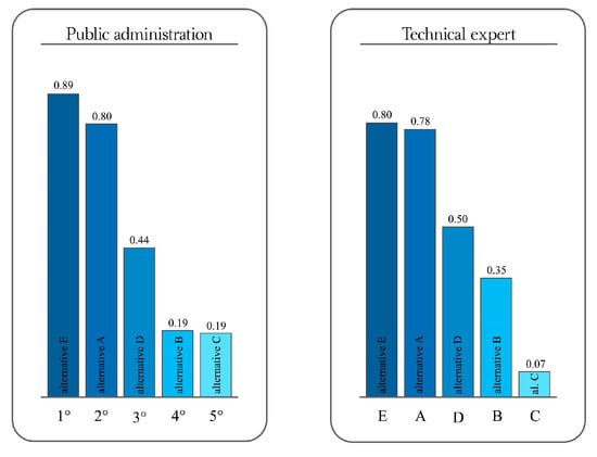 The alternative solution was evaluated by means of a multicriteria method considering two types of analysis, namely a “technical evaluation” linked with the DM’s preferences and a “social evaluation” linked with the stakeholders’ points of view [27,28].