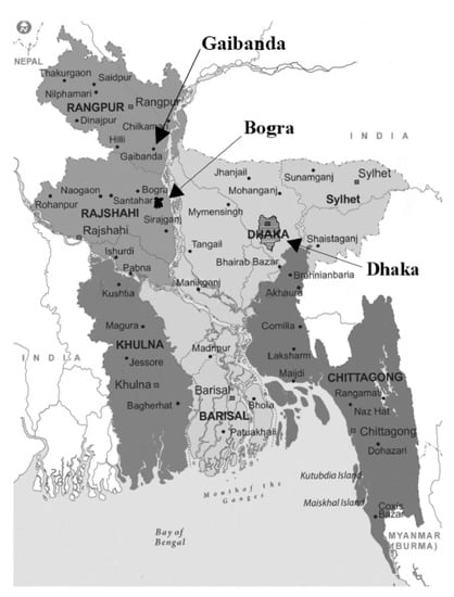 - Bangladesh Bureau of Statistics. Population and Housing Census; Technical Report; Bangladesh Bureau of Statistics: Dhaka, Bangladesh, 2011. [Google Scholar]